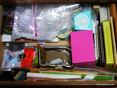 As I become more of an eco-friendly scrapbooker and crafter, there are things I collect to use on my scrapbook layouts, upcycled projects and for the classes I teach. I've decided to share with you how I currently organize my stash of recyclables: coffee sleeves, clothing tags, puzzle pieces and so much more.